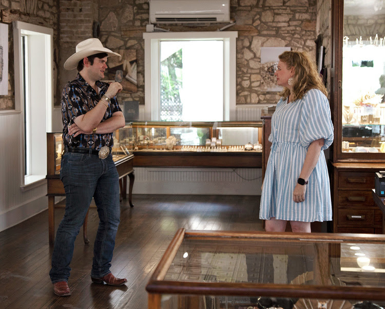 «¡Estamos encantados de estar en el equipo Case!» dice Josie Ann Evans. «Me atrajeron por primera vez sus cortometrajes musicales en Instagram y me encantó el sonido de su voz, como un Phill Collins de campo y tierra roja. Tuvimos el honor de visitar a Case en nuestra sala de exhibición de Bandera en el centro histórico antes de su presentación en el mundo. famoso 11th Street Cowboy Bar. Puedo decir sin duda que es bastante encantador, su gran carácter y autenticidad como cantautor de Texas es innegable. Dio un gran espectáculo en nuestra pequeña ciudad honkey-tonk».